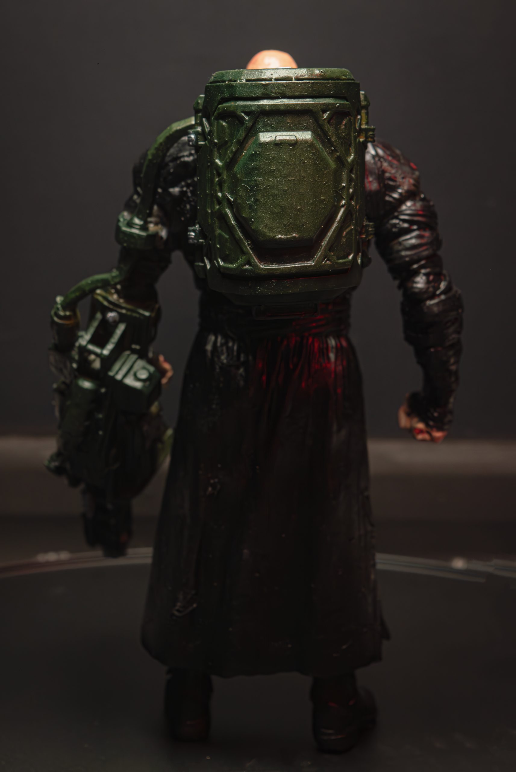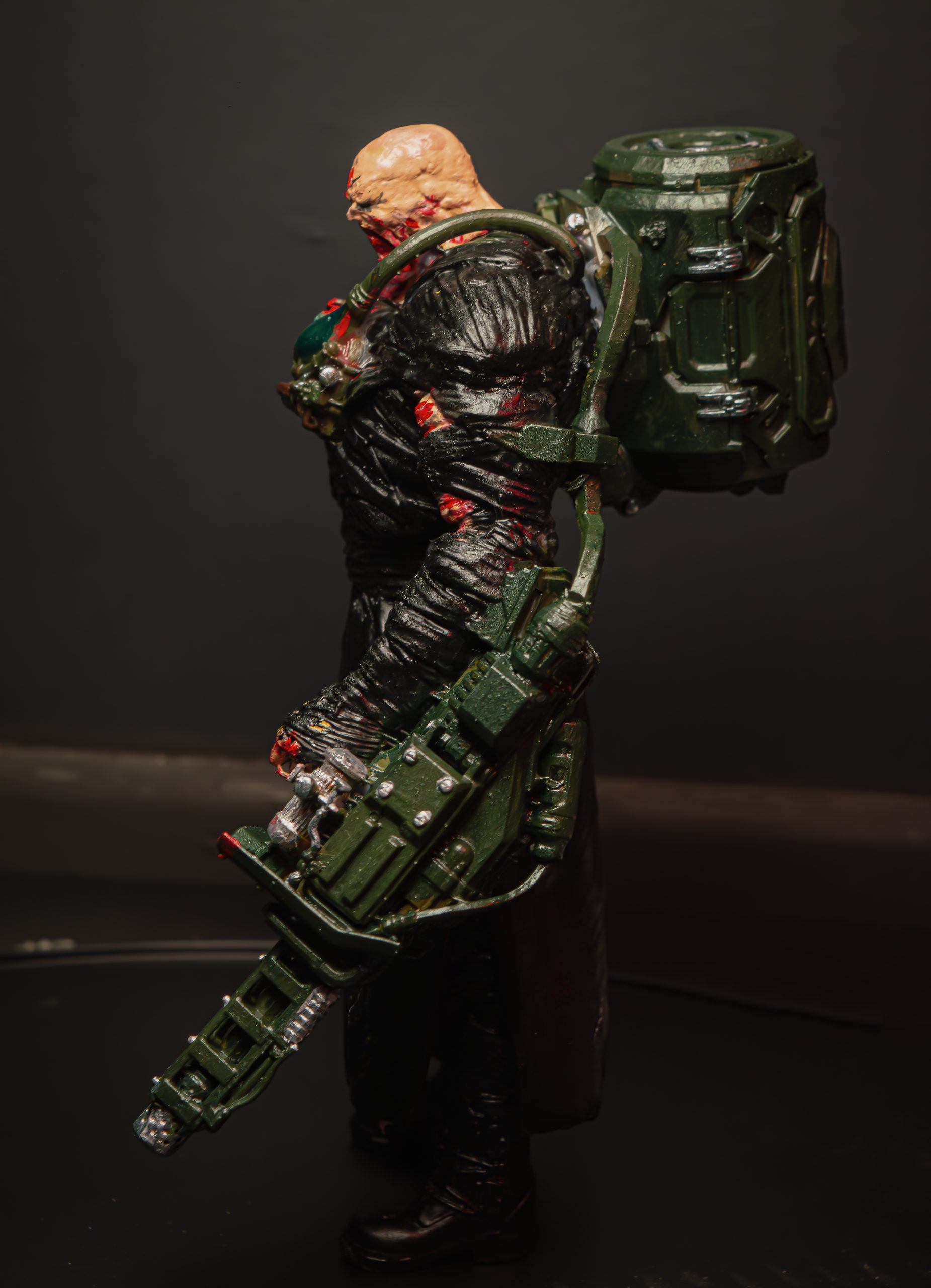 جزئیات بدن تخریب‌شده، زخم‌ها، بافت لباس سیاه و سلاح سنگین او با دقت بالا طراحی و سپس به‌صورت دستی رنگ‌آمیزی شده‌اند تا حس ترس و قدرت این موجود نمادین به بهترین شکل منتقل شود.